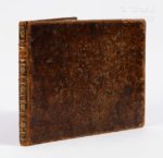 CHIQUET (Jacques). Le nouveau et curieux atlas géographique et historique ou le Divertissement des Empereurs, Roys, et Princes. Tant dans la guerre que dans la paix. A Paris, chez Chereau, [v. 1710]. Petit in-4 oblong, 55 [sur 56] f., [4] f., ill., veau brun moucheté époque, dos à 5 nerfs, pièce de titre fauve, tranches rouges (frottements, accrocs aux coins, coupes et petite fente en tête d’un mors ; qq. bruniss. en marge ; sans le f. 2). Atlas composé d’un titre gravé illustré et de 24 cartes (dont le globe céleste et le globe terrestre en 2 hémisphères) et 3 planches sur les globes et sphères. Les limites des cartes ont été anciennement coloriées. Table manuscrite ancienne au verso du titre, sans doute en remplacement du feuillet manquant. Les derniers f. renferment un tableau de la géographie ancienne et moderne.