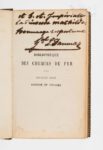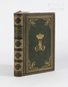 DAUMAS (Eugène). Mœurs et coutumes de l’Algérie : Tell, Kabylie, Sahara. Paris, Hachette, 1853. In-16, [2] f., 391 p., chagrin vert époque, dos à 5 nerfs, auteur et titre dorée, caissons ornées, plats ornés d’un décor doré composé de multiples filets d’encadrement, de quatre « N » couronnés en écoinçons, et d’une initiale « M » couronnée au centre, double filet doré aux coupes, dentelle intérieure, tranches dorées (légers frott. sur les coins et coiffes, mouillures claires en pied de pages). Edition originale de cet ouvrage, parue dans la collection « Bibliothèque des Chemins de Fer ». Exemplaire de Mathilde Bonaparte (18820-1905), dite princesse Mathilde, avec son chiffre sur la reliure et un ex-dono autographe signé de l’auteur.