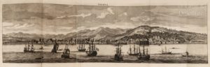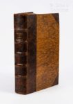 DE BRUYN (Cornelis). Reizen van Cornelis de Bruyn, door de vermaardste deelen van Klein Asia, de eylanden Scio, Rhodus, Cyprus, Metelino, Stanchio, &c. Mitsgaders de voornaamste steden van Aegypten, Syrien en Palestina. Tot Delft, H. van Krooneveld, 1698. Fort in-folio, [20] f. 398 p., pl., rel. ancienne postérieure demi-veau brun à coins, dos à 5 nerfs, titre doré, date frappée en queue (rel. un peu craquelée, frottements épars, qq. défauts intérieurs dont des rousseurs, fentes, plis et salissures sans gravité). Edition originale de l’un des livres relatifs au Levant offrant la plus riche illustration. Celle-ci se compose d’un frontispice gravé par Mulder d’après R. Du Val, du portrait de l’auteur par Valk d’après G. Kneller, d’une carte dépliante couvrant l’essentiel de la Méditerranée, d’une planche montrant une scène de présentation du livre, et enfin, et surtout, 210 figures hors-texte, dont des doubles et dépliantes, offrant des vues de paysages et d’édifices du Proche-Orient, ainsi que des représentations de personnages, éléments de la faune et de la flore. (Atabey 159 ; Cox I, 251).