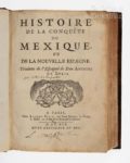 SOLIS (Antonio de). Histoire de la conquête du Mexique ou de la Nouvelle Espagne. Traduite de l’espagnol Paris, Pepie, 1691. Fort in-4, [15] f., 630 pp, [13] f. (table), pl., basane, dos à nerfs orné, pièce de titre maroquin havane, tranches mouchetées, restaurations (épidermures sur les plats, qq. rousseurs et défauts mineurs, quelques pl. lég. brunies aux pliures, petite déchirure avec léger manque de papier p. 567, quelques ff. légèrement brunis). Rare édition originale en français, de la traduction d’André Bon, Comte de Broé, Seigneur de Citri et de La Guette, de cette histoire du Mexique par Antoine de Solis. Elle est illustrée de deux cartes et 12 belles planches gravées sur cuivre par M. Fouard, dont 10 dépliantes. C’est la principale œuvre historique d’Antoine de Solis (Antonio de Solís y Ribadeneyra, 1610-1686) publiée en 1684 à Madrid sous le titre de « Historia de la conquista de México, población y progresos de la América septentrional, conocida por el nombre de Nueva España ». L’auteur s’appuie sur les relations de Francisco López de Gómara et sur les informations et cartes des conquistadors Bernal Díaz del Castillo et Hernán Cortés. L’ouvrage connut un immense succès et fut rapidement traduit en italien, français et anglais. Dramaturge et historien espagnol, de Solis fut secrétaire d’Etat du roi Philippe IV d’Espagne et reçut la charge d’historiographe des Indes. Mention manuscrite au titre : « par Citri de La Guette ». Provenance : L. Dagobert (? ; nom manuscrit en pied du titre). (Leclerc, Bibl. americana 1417 ; Boucher de la Richarderie VI, 159 ; Sabin 86475).