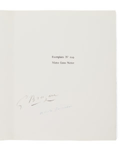 Tirage limité à 200 exemplaires numérotés sur papier vélin de Rives (n° 129 pour Maître Léon Netter), tous signés par Braque et Jouhandeau.