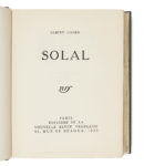 COHEN (Albert) — Solal. — Paris, Éditions de la Nouvelle revue française, 1930. — In-8 (21,6 x 16,4 cm), reliure janséniste maroquin vert canard, dos lisse, tranches dorées sur témoins, doublures et gardes de peau velours grise,...