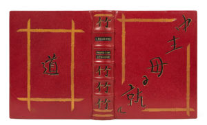 [FOUJITA].– BOISSIÈRE (Jules) — Propos d’un intoxiqué. — Paris, Javal & Bourdeaux, 1929. — In-4 (27,8 x 22 cm), basane écarlate, décor orientalisant mosaïqué de basane fauve avec idéogrammes mosaïqués de basane noire sertis de...