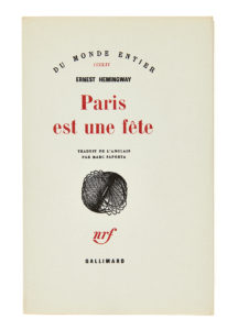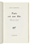 HEMINGWAY (Ernest) — Paris est une fête. — Paris, Gallimard, nrf, 1964. — In-12 (19,7 x 12,5 cm), broché, partiellement non coupé, couverture imprimée, chemise et étui de Devauchelle.
