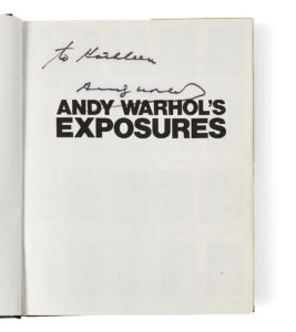 Envoi autographe signé d’Andy Warhol « to Kathleen », sur le faux-titre.