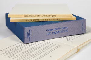 [ZAO].– GIBRAN (Khalil) — Le Prophète. — Paris, Marwan Hoss, Imprimerie nationale, 1992. — 3 vol. in-8 carré (24 x 22 cm), en ff., couvertures imprimées rempliées, étui commun.