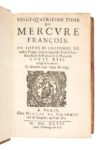 [...]. MERCURE françois ou suite de l'histoire de notre temps, sous le règne du Très-Chrestien Roi de France & de Navarre Louis XIII... Es années 1641, 1642 & 1643. [Vingt-quatrième tome]. À Paris, Olivier de Varennes, 1647, fort vol. in-8°, maroquin rouge, filets dorés autour des plats, armes au centre, dos à nerfs orné, tranches dorées (reliure du XVIIe siècle). Collation : 2 ff. (Titre et Avis au lecteur), 1105 pp., 7 ff. (« Sommaire par ordre alphabétique de ce qui est contenu dans ce volume »). Le Mercure françois est une publication périodique, considérée comme la première revue française connue à être rédigée en langue française, et non en latin. Publiée annuellement au tout début du XVIIe siècle au format in-octavo, on la doit aux imprimeurs-libraires Jean et Estienne Richer. En réalité, 25 volumes furent imprimés en 35 ans entre 1613 et 1648. Deux articles sont ici consacrés aux Turcs, p. 300 « Esclaves turcs baptisez à Rome » et p. 424 « Turcs se jettent en Hongrie ». Exemplaire aux armes de la marquise de Montespan (1641-1707). « Les livres de la marquise de Montespan sont très rares. » (Quentin-Bauchart, Les Femmes bibliophiles, I, pp. 303-306, ne cite que 6 titres à ses armes) Petit travail de vers au coin supérieur droit. Dimensions : 163 x 109 mm. Provenance : René Escande de Messières, avec son ex-libris. Sgard (J.), Dictionnaire des journaux, 1600-1789, T. II, 937.
