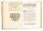 PASCAL (Bl.). Traité du triangle. Paris, G. Desprez, 1665, in-4°, vélin ivoire rigide, cordé, dos lisse avec en pied date et lieu d'impression manuscrits, tranches naturelles (reliure du XVIIe siècle). Collation : (2) ff. (Titre, Avertissement et Table) n. ch. n. sign., 1 pl. hors texte repliée, 12 pp. ch. 1-[12] sign. A6, 8 pp. ch.1-8 sign. A4, 16 pp. ch. 1-16 sign. A-B4 et 48 pp. ch. 1-48 sign. A-F4. ÉDITION ORIGINALE, rare. Publiée de manière posthume, elle est constituée de onze traités, les cinq premiers en français, et les 6 derniers en latin. Cet ensemble a été trouvé imprimé dans les papiers de Pascal (1623-1662) après sa mort. « Le coeur de son propos est occupé par la figure du "triangle arithmétique", présentation tabulaire qui dispose en rangées et colonnes des nombres répondant à des règles de progression données, constituant ce que Pascal appelle des "ordres numériques" et correspondant aux anciens "nombres figurés"... Cette disposition n'a en elle-même rien de révolutionnaire et était connue de plusieurs mathématiciens du XVIe siècle ; mais la nouveauté de Pascal est d'en fournir une théorie à travers laquelle il expose les principes du raisonnement par récurrence. » ([...], Pascal, le coeur et la raison, BN, 2017, n° 70). Superbe exemplaire, très pur. Le vélin du second plat a été recousu sur 4 cm au moment de la reliure. Pas de feuillet de garde en début de volume. Trace d'un filigrane au dernier feuillet blanc. Dimensions : 222 x 167 mm. Provenance : trace d'un ex-libris décollé au premier contreplat. Tchemerzine, V, p. 61 (« Édition originale, très rare ») ; Maire (A.), Bibliographie générale des oeuvres de Blaise Pascal, I, Pascal Savant, pp. 108-113 ; Brunet, IV, 401 ; Hook (D. H.) - Norman (J. M.), The Haskell F. Norman Library of Science & Medicine, 1991, II, 1651 ("Pascal was the first to make a comprehensive study of the arithmetical triangle...") ; Klein, pp. 272-273 ; D.S.B., 9 & 10, pp. 330-342.