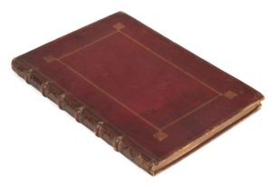 MENESTRIER (Cl.-Fr.). Histoire du Roy Louis le Grand pour les médailles, emblèmes, devises, jettons, inscriptions, armoiries... À Paris, I.B. Nolin, 1689, in-folio, maroquin rouge, encadrement à la Du Seuil autour des plats, dos à nerfs orné, tranches dorées (reliure de l'époque). Collation : 1 f. de titre, 1 f. de dédicace « Aux Augustes enfans de France… fils de Louis Dauphin de France petit-fils de Louis le Grand », 1 second f. de dédicace avec un sonnet et le portrait de Louis XIV, 45 pl. de médailles, de devises, d'emblèmes... ch. 4 à 48, 1 pl. double « Veüe de la place des Victoires… » ch. 50, 12 pl. principalement d'armoiries ch. 50 à 61, 1 f. « Avertissement / Extrait du privilège du Roy… » ch. 62. Premier tirage. L'ouvrage est entièrement gravé, soit 62 planches dont une partie sont d'après Le Brun et Mignard. Les médailles sont tirées du cabinet du P. de La Chaise, le confesseur de Louis XIV. L'Histoire du Roy Louis le Grand représente l'aboutissement du travail d'emblémiste, empreint de la culture de la monarchie louis-quatorzième, du P. Menestrier (1631-1705), jésuite réputé pour ses connaissances et son esprit créatif. Bel exemplaire, très bien conservé intérieurement. Coins usés, quelques épidermures, second plat discrètement taché. Dimensions : 375 x 265 mm. Provenance : ex-libris manuscrit daté 1690, Charles-Léonor Aubry, conseiller au Parlement de Paris aux séquestres. Landwehr, 518 ; Backer (de) & Sommervogel, V, 932, 113 (annonce seulement 61 pl.) ; Allut, CIV.