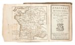 ÉTRENNES mignonnes, curieuses et utiles... pour l'année 1757. À Paris, Chez Durand, 1757, in-24, maroquin vert olive, plats décorés d'une plaque dorée, à la toile d'araignée, dos lisse orné, doublure et gardes de papier à décor floral sur fond doré, tranches dorées (reliure de l'époque). Collation : 80 pp., 2 cartes. Édition inconnue de John Grand-Carteret. 2 cartes dépliantes, la France ecclésiastique et les Environs de Paris. Dimensions : 94 x 55 mm. Provenance : Aubry-Vitet, avec son ex-libris gravé par Agry. Eugène Aubry-Vitet (1845-1930) est un historien et homme politique français, diplômé de l'École des chartes. Pas de catalogue de vente.