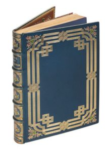 SAINT-PIERRE (J.-H. Bernardin de). Paul et Virginie. Paris, L. Curmer, 1838, gr. in-8°, maroquin bleu, jeux de filets dorés autour des plats avec motif floral mosaïqué en angles, dos à nerfs orné d'un motif floral répété cinq fois, doublure de maroquin tabac avec une large guirlande florale mosaïquée, doublure de soie bleue, tranches dorées, chemise et étui gainés de maroquin bleu (Mercier sr de Cuzin). Collation : 66 pp. ch. X à LVI, 458 pp. ch. [1]-458, 1 f. « Tables des Matières », 5 ff. « Table des noms des dessinateurs et des graveurs » et 1 f. « grandes vignettes », 37 pl. hors texte. Premier tirage. Célèbre édition, emblématique de la période romantique, perle des livres illustrés du 19e siècle selon Jules Brivois. 29 planches hors texte gravées sur bois et 7 portraits gravés sur acier tirés sur chine appliqué et protégés par des serpentes de soie portant une légende imprimée, une carte coloriée de l'Ile-de-France tirée sur chine appliqué et environ 450 vignettes gravées sur bois dans le texte ; les portraits ont été dessinés par Lafitte, Tony Johannot et Meissonnier, l'illustration gravée sur bois est due à Meissonnier, Français, Tony Johannot, Isabey, Huet, Marville, Steinheil… L'un des rares exemplaires imprimés sur papier de Chine. La page de titre est à l'adresse de la rue Sainte-Anne. Il présente les particularités suivantes : - le portrait de Bernardin de Saint-Pierre est avant la sphère et avant les noms des artistes. La serpente n'est pas imprimée ; - un double état de la carte dont un en couleurs, avec serpente non imprimée ; - un portrait de Madame de La Tour (?), page 15, dessiné par Jenkins, gravé par J. Cochram ; - un portrait, La Jeune Bramine, sur chine collé avant lettre. Luxueux exemplaire, très grand de marges, très bien conservé. Il a été relié par Émile Mercier (1855-1910) qui avait repris l'atelier de Cuzin en 1892, et dont il avait été le doreur depuis 1882. Dimensions : 290 x 188 mm. Provenance : Antoine Vautier (Cat., 1977, n° 185, reproduction), avec son ex-libris. J. Brivois, Bibliographie des ouvrages illustrés du XIXe siècle, pp. 388-396.