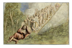 Luigi Ademollo, Il sogno di Giacobbe. – 1817 ca. — Penna e inchiostro bruno, pennello, tempera e acquerello a colori, tracce di matita nera. — Carta avorio lievemente spessa non vergellata. — In basso a destra con grafia minuscola a matita...