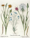 4) Linum sylvestre flore coeruleo..., Tragopogon flore luteo, Tragopogon purpureum. Da Hortus Eystettensis.