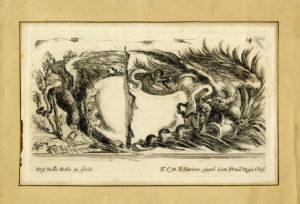 Buona prova nel II stato di 3 prima dell'indirizzo di Mariette su carta non vergellata. / François Collignon da Stefano Della Bella. Frontespizio da Serie di otto marine, serie eseguita nel 1634 e dedicata al principe Don Lorenzo di Toscana. Acquaforte. mm 123x217. DeVesme/Massar, 810.