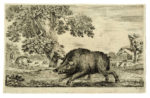 Id., Caccia al cinghiale. Acquaforte. mm 150x236. DeVesme/Massar, 733. Al margine in basso a destra a puntasecca "S.D.Bella". Da Cacce a diversi animali, serie in nove tavole databile al 1654. Ottima prova nell'unico stato impressa su carta vergellata con filigrana "tre mezzelune". /