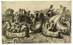Da invenzione di Polidoro da Caravaggio verosimilmente eseguita su una facciata. Copia nello stesso verso da originale del Maestro del Dado.