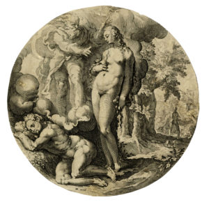 Jan Harmensz Muller, Il VI giorno. — Dio crea Adamo ed Eva. — 1589. — Bulino. Ø mm 263.