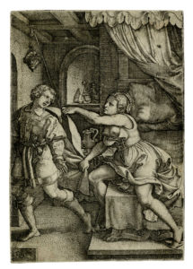Georg Pencz, Giuseppe e la moglie di Putifarre. — 1546. — Bulino. mm 115x78.