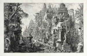 Fantastico capriccio dove l'interesse per l'archeologia e l'immaginazione visionaria dell'autore rievocano la congiunzione tra l'antica Via Appia e la Via Ardentina due miglia fuori Porta Capena.