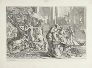 Pietro Testa, Nascita e infanzia di Achille (Teti immerge Achille nell'acqua dello Stige). — 1648-1650. — Acquaforte e puntasecca. mm 280x416. — Foglio : mm 375x510.