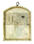 Al verso testo contenente moniti sul momento del trapasso in francese nelle prime righe e latino nelle seguenti (il teso si conclude con [...] salicet justa a deo [in] mundo derelictio"); complessivamente dieci righe con due capilettera in oro bruno. Scrittura gotica francese.