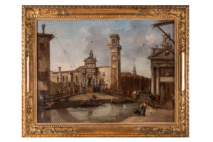 Giuseppe Ceccarini, La porta dell'Arsenale. — 1798. — Olio su tela. cm 54,5x72,5. — Al verso sulla tela "Giuseppe Ceccarini di Fano dip. l'A. 1798"