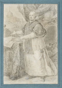 Giovanni Domenico Porta, Ritratto di Papa Pio VI Braschi. — 1776 ca. — Matita nera, matita di grafite, rialzi in bianco su carta vergellata color avorio. — Linea d'inquadramento a penna e inchiostro nero. mm 525x355.
