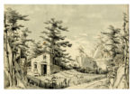Id., (attribuito), Due vedute boschive con edifici e architetture classiche. Penna e inchiostro bruno, pennello e acquerello grigio su carta vergellata spessa bianca. mm 190/198x283/291. /