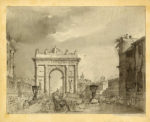 Alessandro Sanquirico, Due scenografie classiche. — 1817-1832. — Penna e inchiostro di china, penna e inchiostro bruno, pennello e acquerello grigio e seppia, carta bianca vergellata. mm 187/210x237/268.