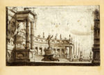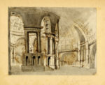 Id., (attribuito). Progetto di scenografia. Penna e inchiostro bruno, pennello e acquerello marrone e seppia su carta vergellata lievemente spessa. mm 172x268. /