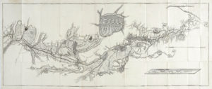 Giovanni Canocchi (abate) (attivo in Toscana seconda metà  del XVIII secolo ), Carta idrografica del corso della Chiana dall'Arno al Tevere. — 1788. — Incisione in rame su due lastre. mm 440x1045. — Foglio : mm 458x1062.