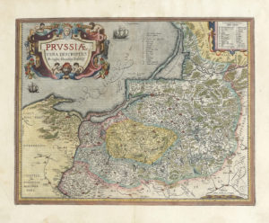 Abraham Ortelius Johannes Baptista Vrients, Prussiae vera Descriptio. Per Gaspar Henneberg. Erlichens. Antwerp : 1609-1612. — Incisione in rame in coloritura. — Mm 368x470. Foglio : mm 470x568.