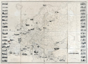 Aristide-Michel Perrot, Carte Pittoresque & Maritime de l'Europe indiquant La division des Etàts les Routes et Chemins… revue et augmentée par Alexandre Aimé Vuillemin (1812-1880). Paris : Fatout Editeur, 1845. — Incisione in rame. — Formato...