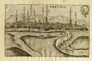 Veduta di Treviso edita a Padova da Francesco Bolzetta all'interno dell'Itinerario overo nova descrittione de' viaggi principali d'Italia, opera che riprende il viaggio di Franz Schott, italianizzato in Francesco Scoto, lungo la Penisola e sorta di prima guida turistica per visitare l'Italia.