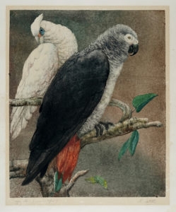 Romeo Costetti, Pappagalli. — Monotipo. mm 477x398. — Foglio : mm 635x485.