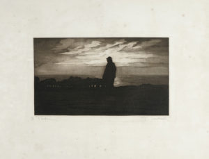 Pietro D'Achiardi, Il pastore. — 1920 ca. — Acquatinta. mm 250x400. — Foglio : mm 470x610.