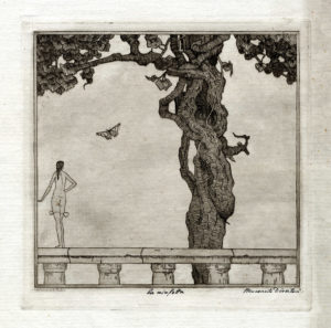 Benvenuto Disertori, La ninfetta. — 1913. — Acquaforte su carta vergellata. mm 199x200. — Foglio : mm 310x310.