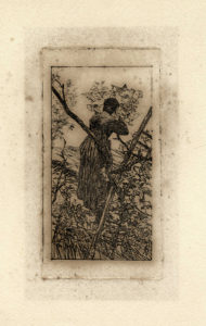Giovanni Fattori, Raccoglitrice di foglie. Ante 1888. — Acquaforte su zinco. mm 196x101. — Foglio : mm 365x273.