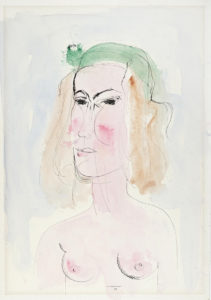 Bruno Cassinari, Le amiche. — 1978. — Acquerello e penna e inchiostro di china nero su carta. mm 700x495.