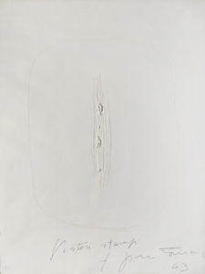 Lucio Fontana, Concetto Spaziale. — 1963. — Acquaforte, goffratura e buchi su carta Fabriano. ruhé-rigo, e-19. mm 635x500.