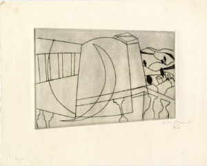 Benjamin Nicholson, San Gimignano. — 1966. — Acquatinta. mm 144/170x235 (lastra irregolare in altezza). — Foglio : mm 278x350. lafranca, 38.