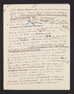 GIDE — Réponse à une enquête. — Brouillon manuscrit et signé de cette même réponse, un petit peu moins détaillée mais dont le fond reste le même. — 5 pages in-4, ratures et corrections.