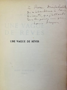 ARAGON Louis — Une vague de rêves. — Hors Commerce — Paris s.d. (1924). — E.O. (pas de grand papier). — Très bel envoi, « À Pierre Drieu la Rochelle qui m'abandonne à tous les vents, que j'attends tous les jours un peu ». —...