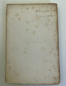 ARAGON Louis — Anicet ou le panorama. — NRF Paris 1921. — E.O. — L'un des ex. sur Pur fil, seul grand papier après les réimposés. — Envoi, « A Pierre Drieu la Rochelle ». — Broché in-12, sans le dos, couvertures décollées et...