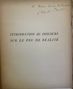 BRETON André — Introduction au discours sur le peu de réalité. — Gallimard Paris 1927. — E.O. — L'un des 80 ex. sur Vélin Bouffant Lafuma en S.P.