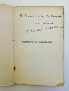 BRETON André — Manifeste du surréalisme. — Ed. Kra Paris 1924. — E.O. — Envoi, « A Pierre Drieu la Rochelle.