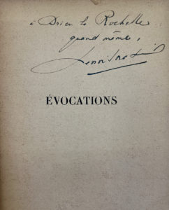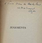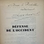 MASSIS Henri — Ensemble de 6 ouvrages tous dédicacés à Pierre Drieu la Rochelle. — Broché in-12 ou in-8, la plupart en S.P., mauvais état : Jugements (tome 1 et 2) / Jugements, supplément au tome 2 / Défense de l'Occident / Chefs /...