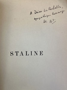 travail (dédicacé) / Léon TROTSKY : Nouvelle étape (librairie de l'Humanité 1922 passages surlignés) / Boris SOUVARINE : Staline( Plon 1935, dédicacé) / Karl MARX : Le capital ( Librairie du Progrès. Relié sans signature).