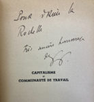 (MARXISME) Ensemble de 5 ouvrages sur le marxisme, tous avec signature manuscrite de Drieu la Rochelle en page de garde : Marx et Engels le manifeste communiste (Riederti passages soulignés) / François PERROUX : Capitalisme et communauté de...