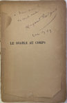 RADIGUET Raymond — Le diable au corps. — Grasset Paris 1923. — Envoi, « A Drieu la...[reste du nom coupé] en toute amitié. — Raymond Radiguet 1923 ». — Piteux exemplaire débroché, sans les couvertures et avec des manques sur la page...